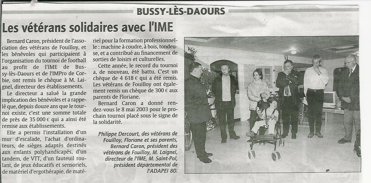 Un don de l'association des Ainés de Poix de Picardie (25/05/2002) |