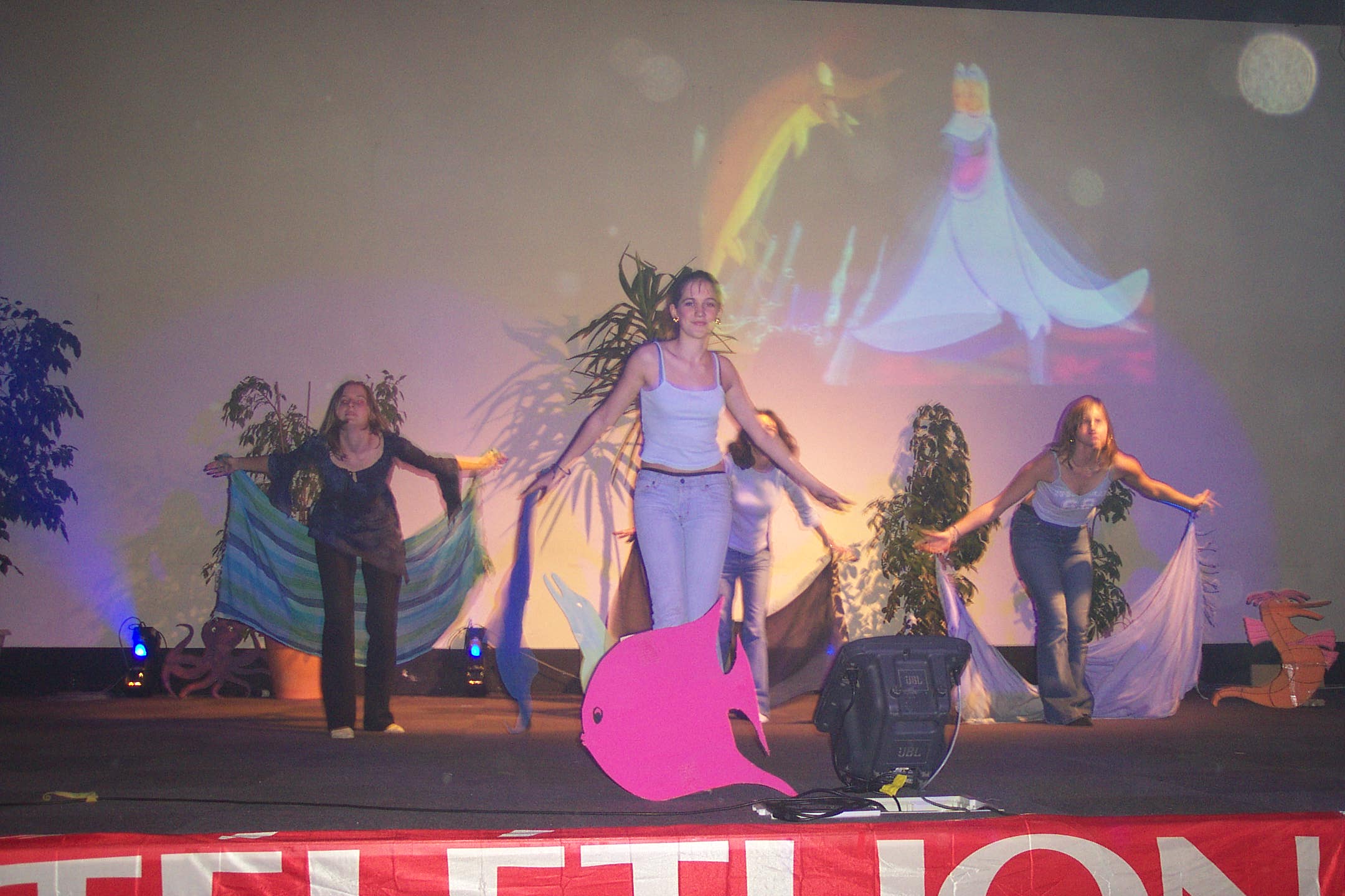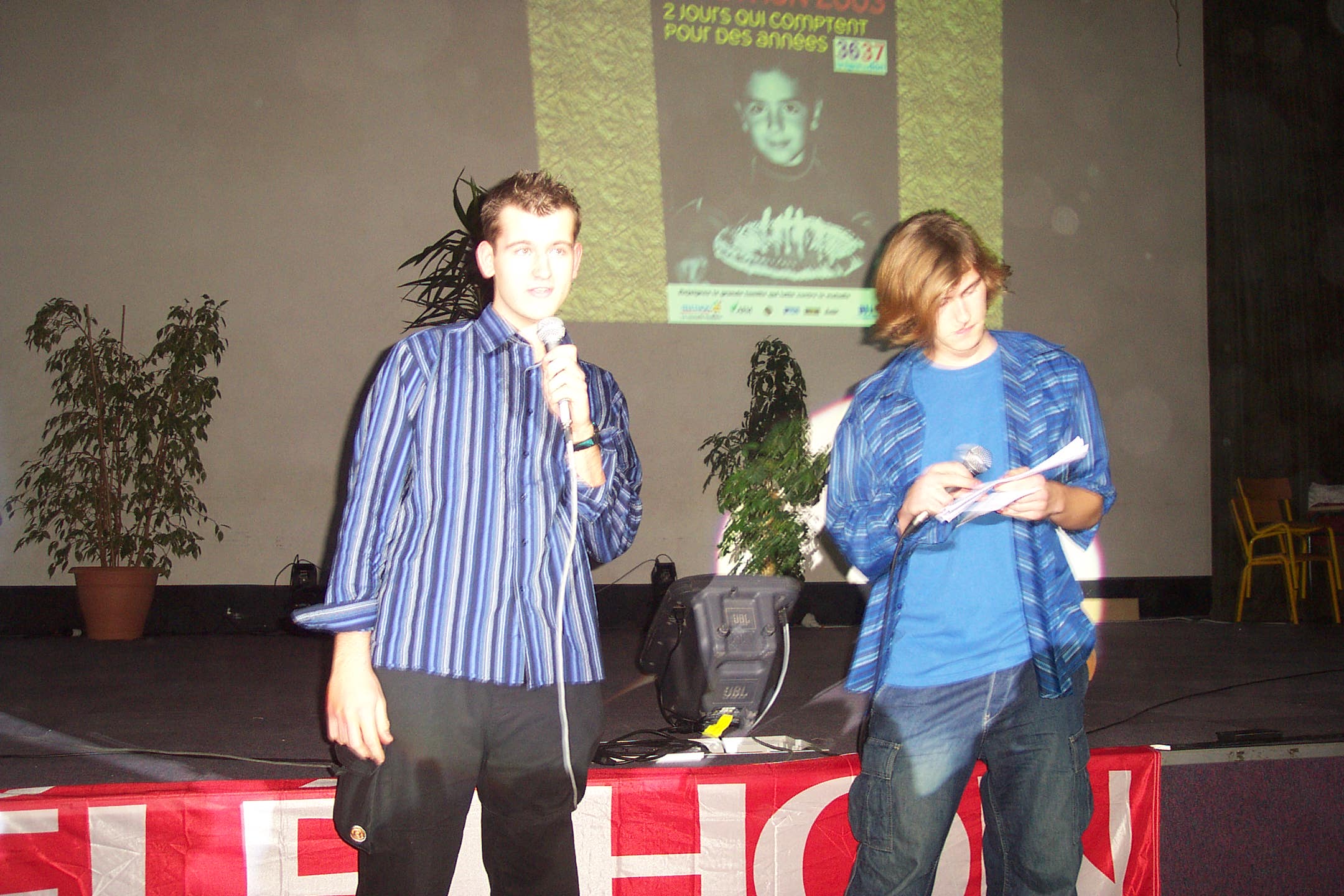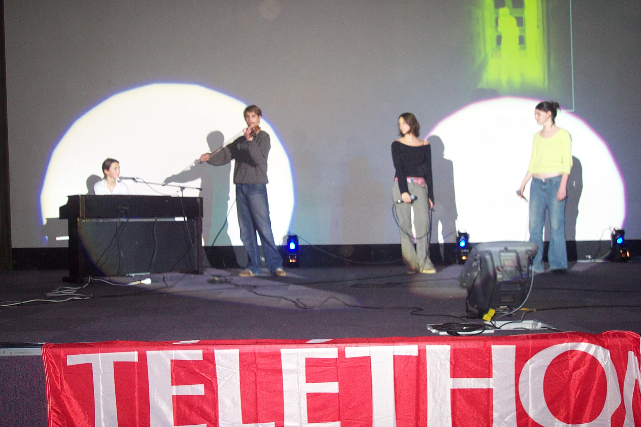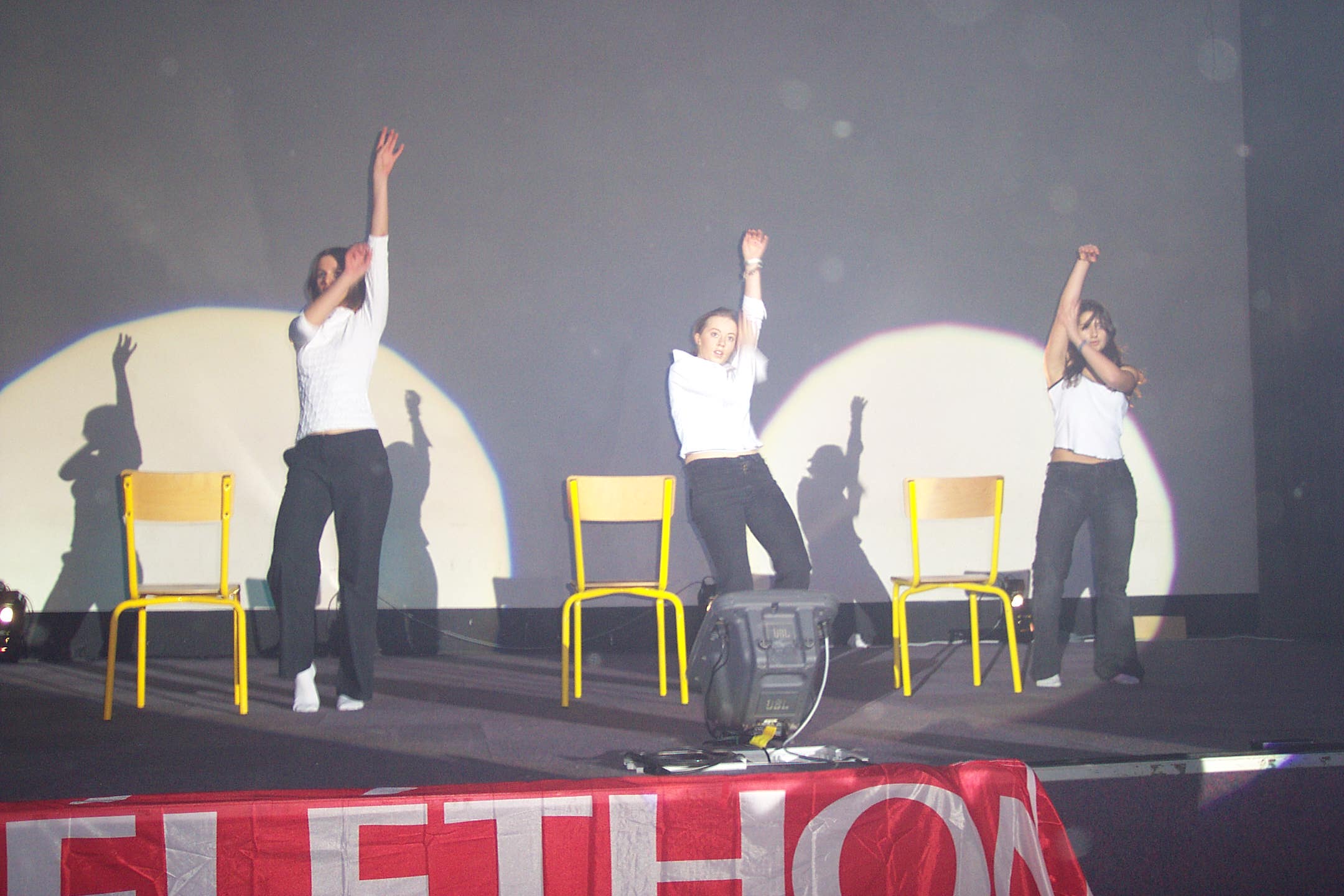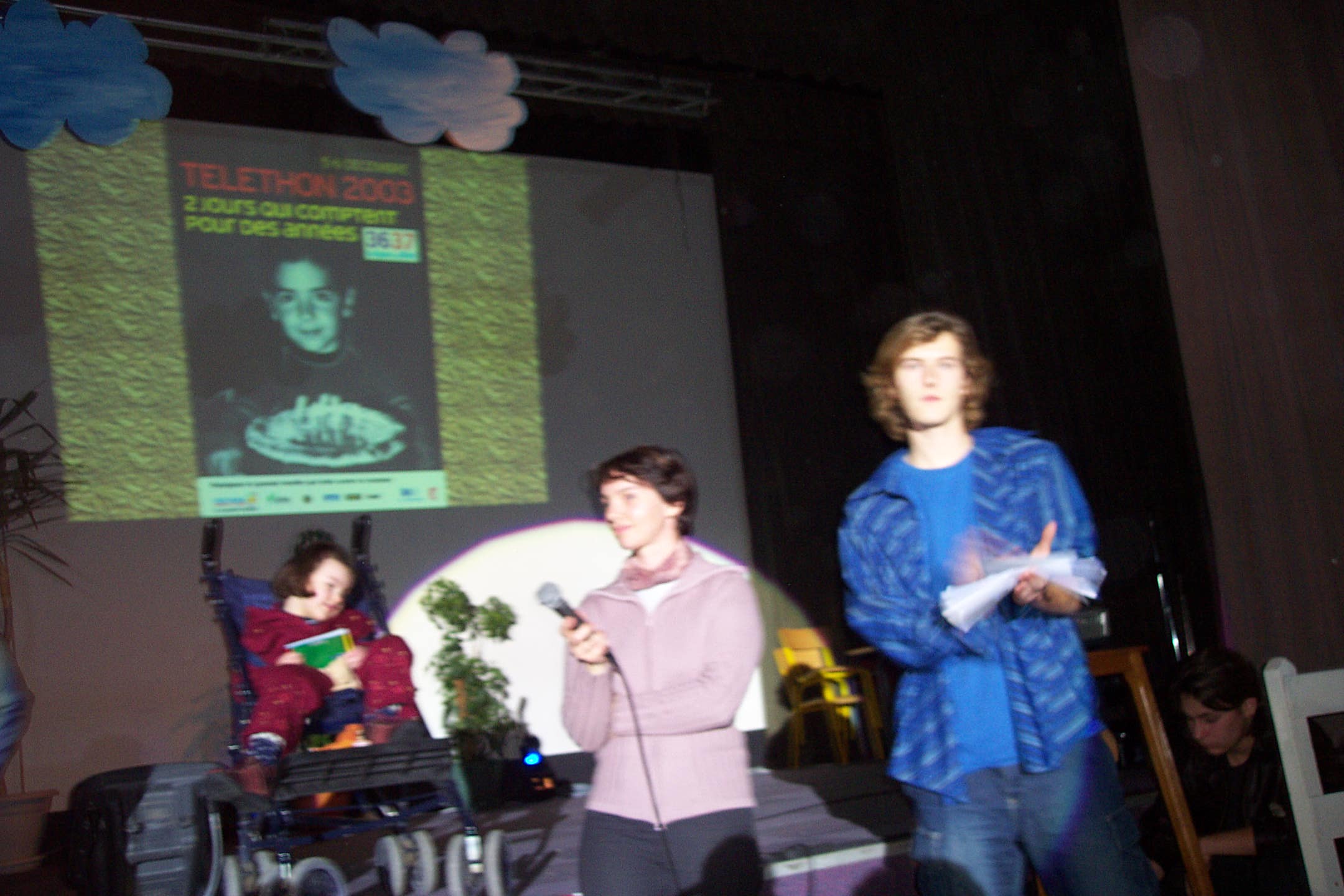 A l'occasion du Téléthon 2003, nous avons été invités une nouvelle fois par Julien et Jean-François Delaby à assister au spectacle mis en scène par les élèves et leurs professeurs. Un chèque de 556.94 euros m'a été remis lors de cette soirée remplie d' humour et de solidarité envers les personnes atteintes de maladie génétique. Encore merci pour ce superbe spectacle et félicitations aux artistes, gros bisous Floriane et ses parents !